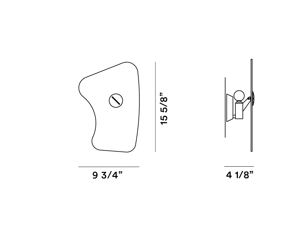 Lámpara de pared de luz reflejada y difusa. Combinando las diversas formas y colores disponibles, se obtiene un efecto en la pared de gran impacto gráfico y decorativo. Estructura y florón de pared en metal pintado con polvos epoxídicos. Difusor en vidrio pintado con color o blanco satinado, disponible en 5 formas de medidas y colores distintos, fijados a la estructura mediante bloqueador de vidrio decorativo en metal pintado con polvos epoxídicos. La lámpara dispone de cableado transparente con clavija e interruptor on/off en el cable.