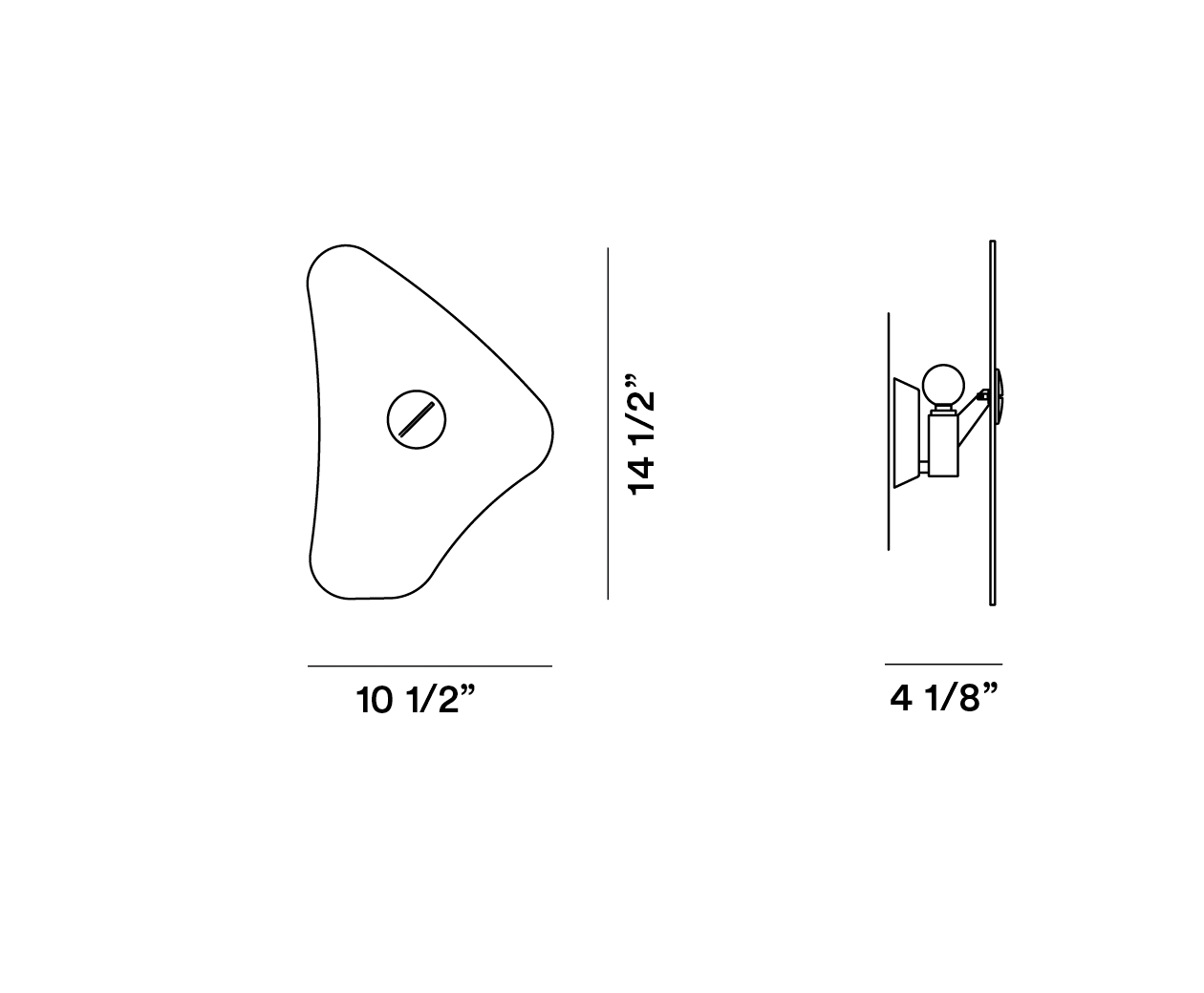 Lámpara de pared de luz reflejada y difusa. Combinando las diversas formas y colores disponibles, se obtiene un efecto en la pared de gran impacto gráfico y decorativo. Estructura y florón de pared en metal pintado con polvos epoxídicos. Difusor en vidrio pintado con color o blanco satinado, disponible en 5 formas de medidas y colores distintos, fijados a la estructura mediante bloqueador de vidrio decorativo en metal pintado con polvos epoxídicos. La lámpara dispone de cableado transparente con clavija e interruptor on/off en el cable.