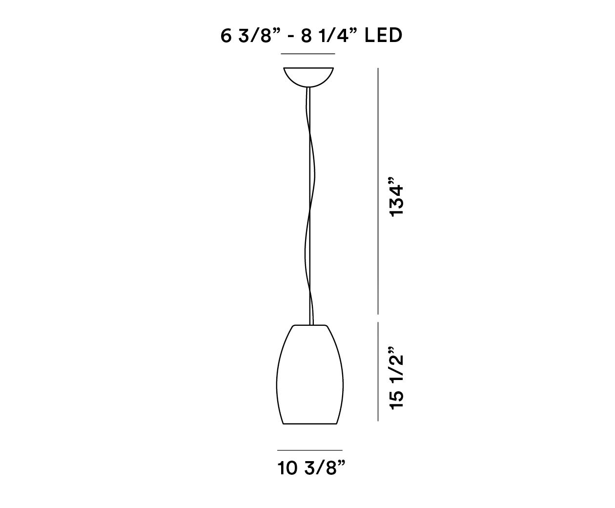 Lámpara de suspensión de luz difusa. Difusor en vidrio encamisado soplado a boca, blanco en el interior y coloreado en el exterior con acabado brillante. Con el interior “pajizo”, la versión de color “blanco cálido” resulta de un color marfil cuando está encendida y se queda blanca cuando está apagada. Soporte del difusor en policarbonato transparente moldeado por inyección. Cable de suspensión en acero inoxidable y cable eléctrico transparente. Florón de techo en ABS blanco. Disponible kit para la descentralización del florón.