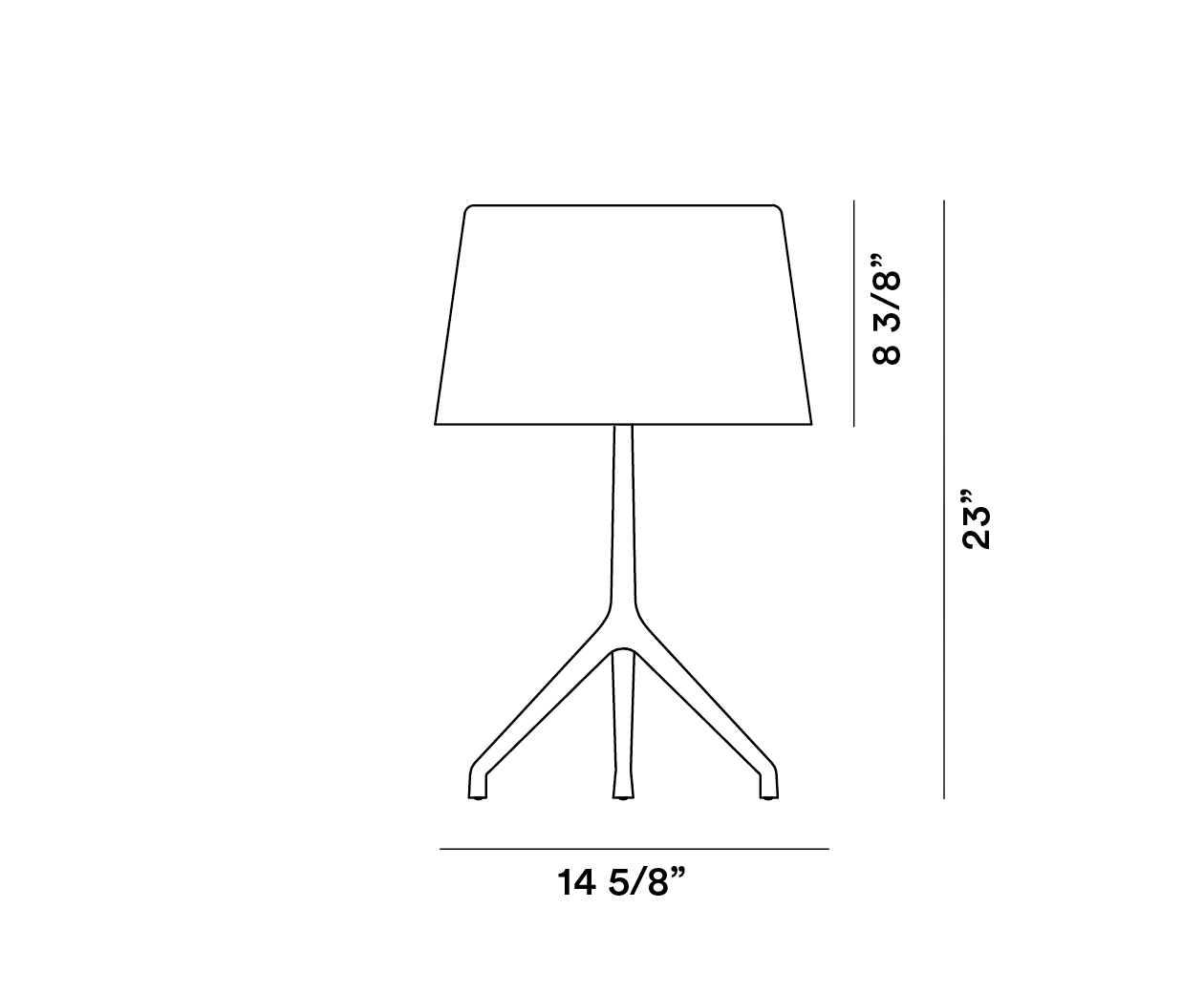 Lámpara de mesa de luz directa y difusa. Vidrio de cristal soplado a boca con espejo de nitrato de plata en forma líquida que cuando está encendida deja entrever la fuente luminosa. Base tipo trípode en vaciado a presión de aluminio acabada y abrillantada a mano en la versión aluminio, pintada con líquido en la versión cromo negro o champagne; pies en silicona resistente al rayado. Con dimmer que permite una regulación gradual.