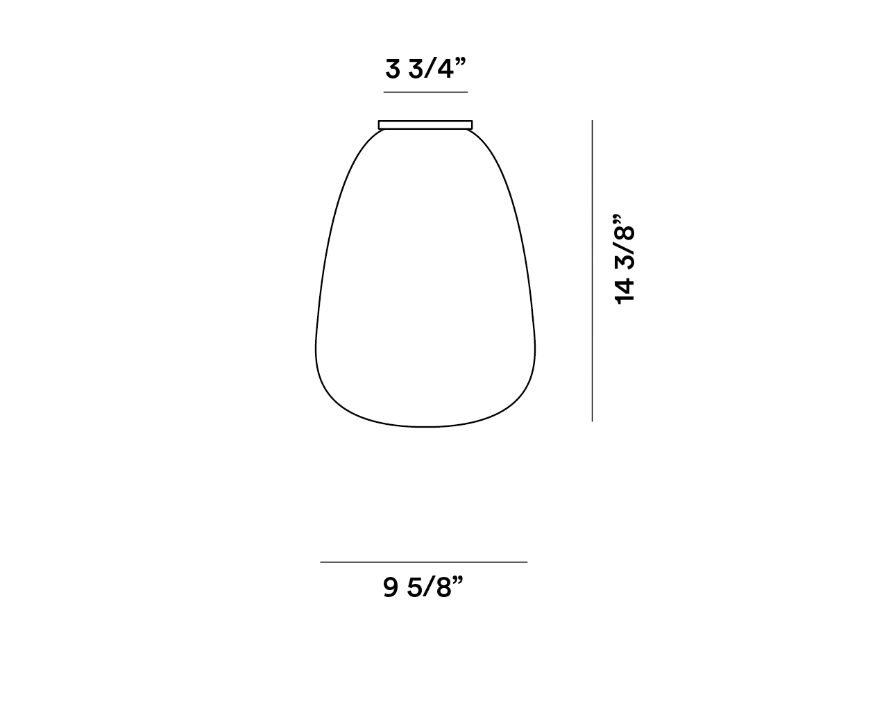 Colección de plafones de luz difusa. Tres formas de difusor en vidrio soplado a boca con procedimiento de soplado del vidrio sin girar en el molde (“parado”), el efecto a rayas se obtiene con un molde con decoraciones en negativo que se repiten en la superficie del vidrio, a continuación el vidrio se esmerila manualmente “con cinta” y se somete a un procedimiento de inmersión en ácido para marcar el efecto yesoso. Montura de techo en metal pintado con polvos epoxídicos.