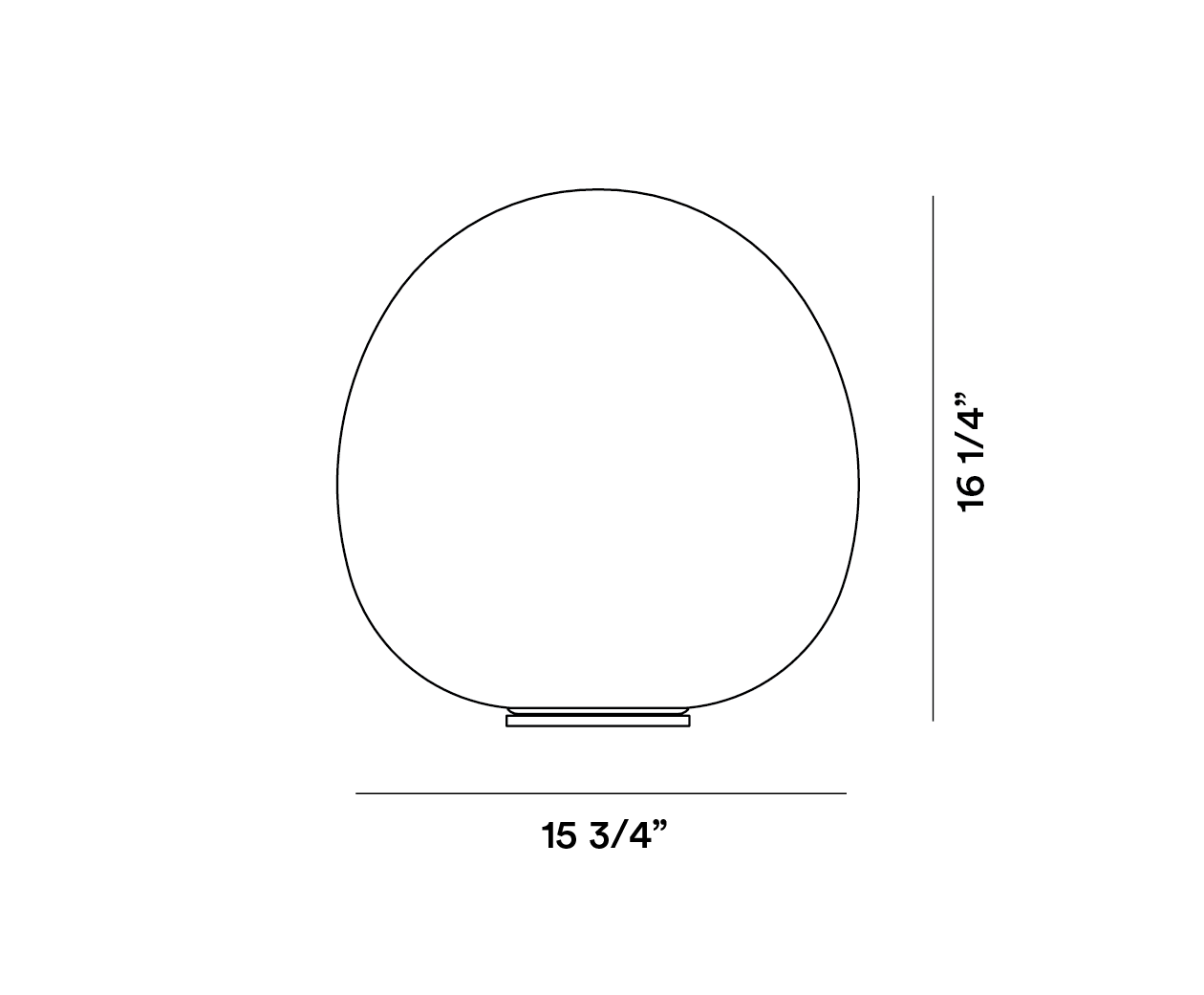 Lámpara de mesa de luz difusa. Vidrio soplado fijo, con efecto ranurado obtenido con un molde con decoraciones en negativo que se repiten en la superficie del vidrio. Luego el vidrio se esmerila manualmente con cinta y se sumerge en ácido para obtener el efecto yesoso. Base de apoyo blanco en metal pintado con polvos epoxídicos y soporte del portalámpara en policarbonato transparente mate moldeado por inyección. Interruptor on/off en el cable transparente o con regulador de luz que permite la regulación gradual.