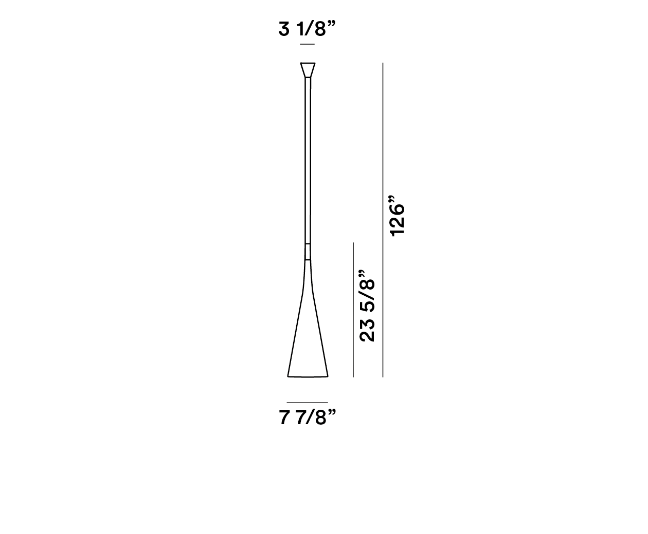 Lámpara de suspensión con luz difusa y directa. Difusor cónico y tubo en elastómero termoplástico, cono moldeado por inyección y tubo realizado por extrusión. Difusor interno cónico en policarbonato opalino, escudo en policarbonato translúcido. El aparato se entrega con borne para uso externo IP44, en el embalaje se incluye una clavija para la adaptación a lámpara de interior y las instrucciones para acortar el tubo. El interruptor on/off se encuentra dentro del tubo en el extremo del cono difusor.