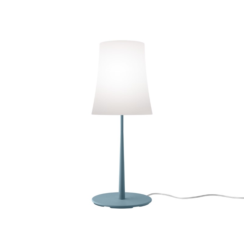 Una lampada da tavolo a luce diffusa che esprime il suo stile attraverso il colore. Minimale e leggera, è disponibile in due diverse misure. Base in lega di zinco presso fusa e stelo in acciaio entrambi verniciati a liquido. Diffusore interno opalino in policarbonato stampato a iniezione, diffusore esterno in policarbonato traslucido stampato a iniezione. L’interruttore on/off è posizionato sul cavo trasparente.