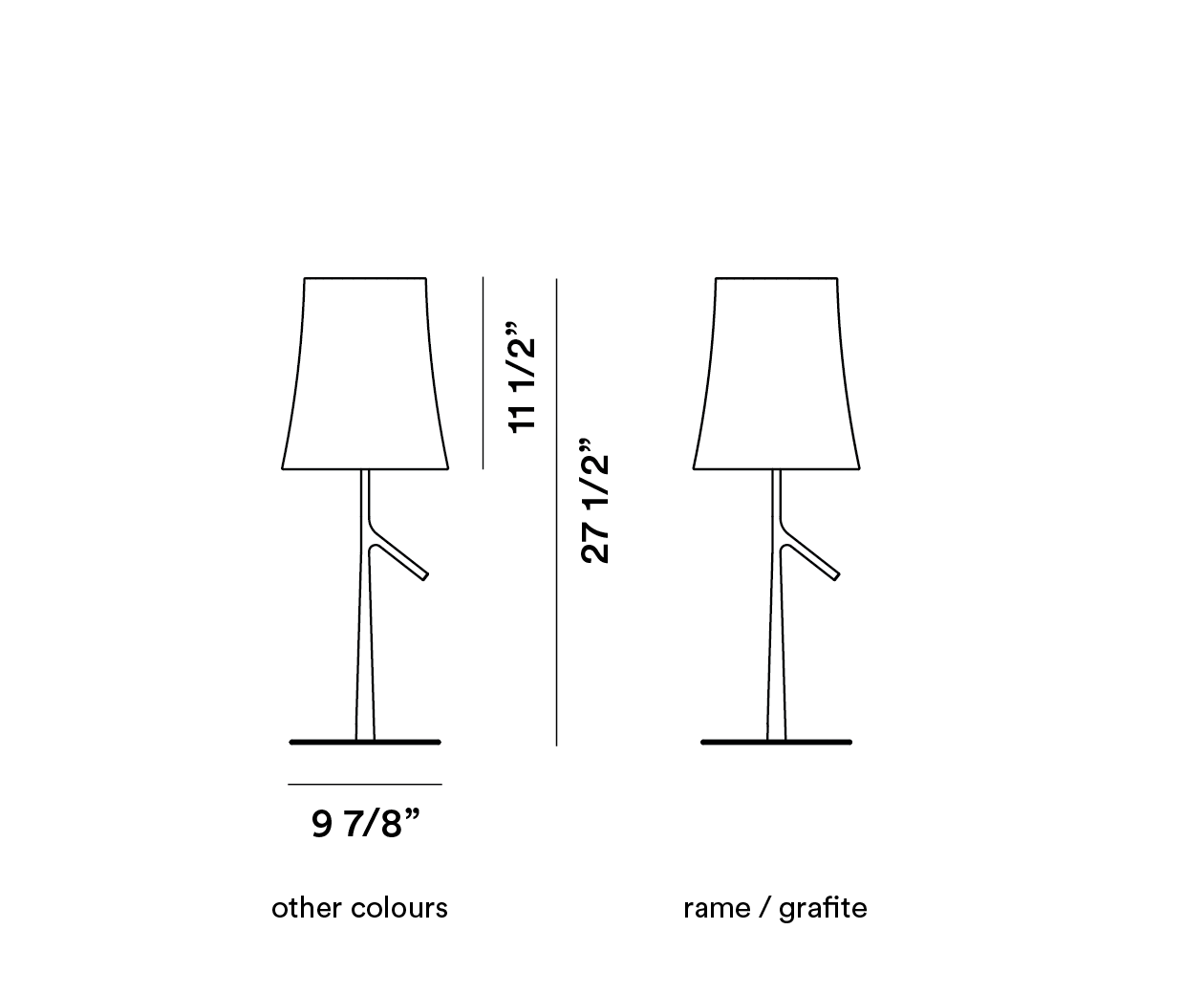 Birdie is a table lamp with a familiar design which reinterprets the classic lampshade-lamp with a contemporary twist. Made with durable yet light-weight materials, it is also perfect for use as a bedside lamp.