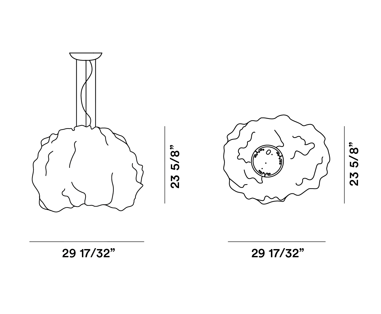 Una nuvola di luce da modellare, realizzata in un tessuto tecnico tridimensionale. Una lampada da sospensione leggera e aerea, con una doppia luce LED per illuminare la nuvola stessa e il piano sottostante. Informale ma estremamente presente, arricchisce gli ambienti senza sovrastarli.