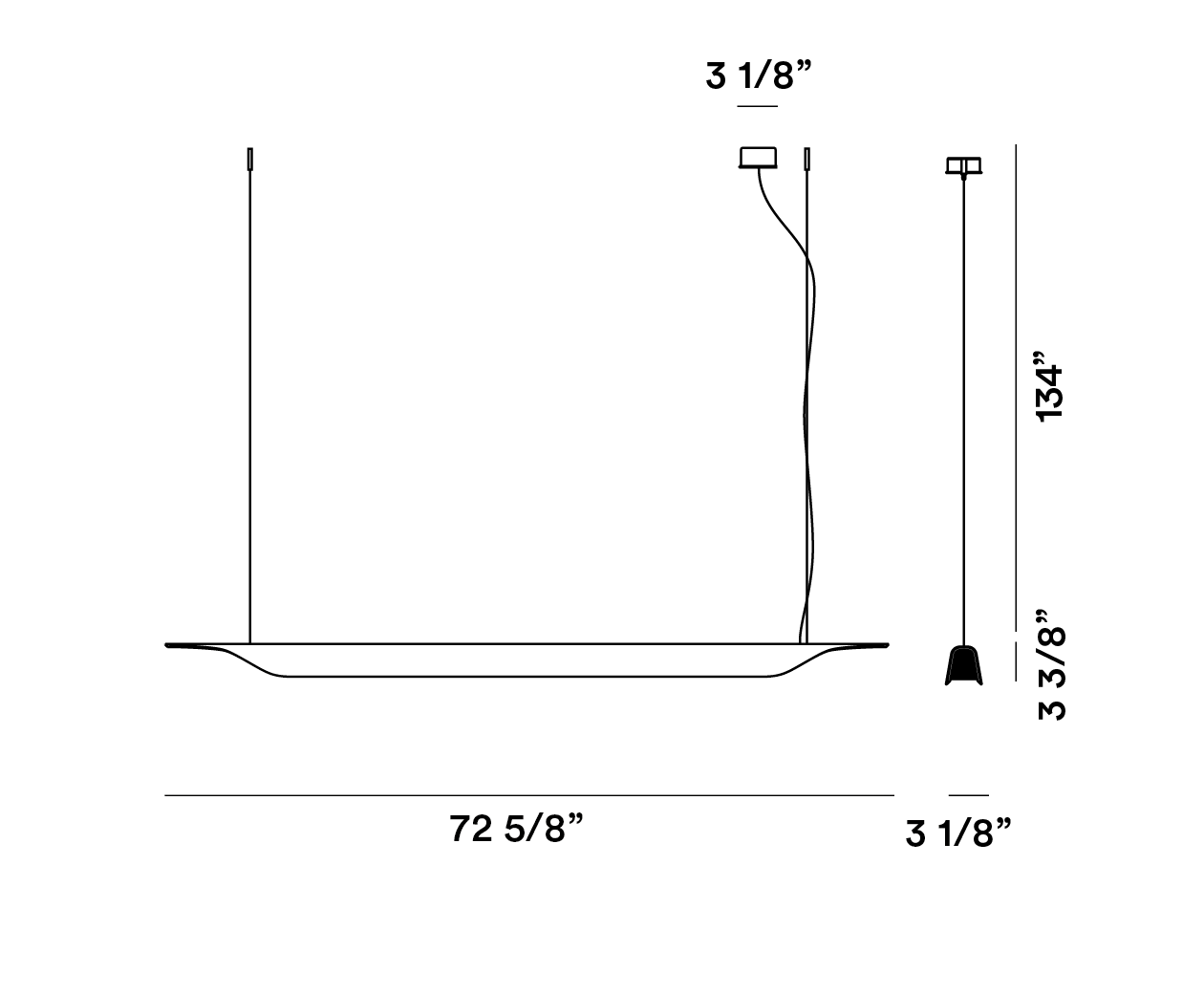 Suspension lamp with direct light. Completely redesigned lighting technology part to offer a new LED version, Troag combines high-performance light with the refined elegance of wood. Diffuser made of hot curved plywood processed on the edges with a 5-axis mill, matt extruded PMMA internal diffuser. Two stainless steel suspension cables with satin finish steel mechanical ceiling attachment and transparent electrical cable. White ceiling canopy.