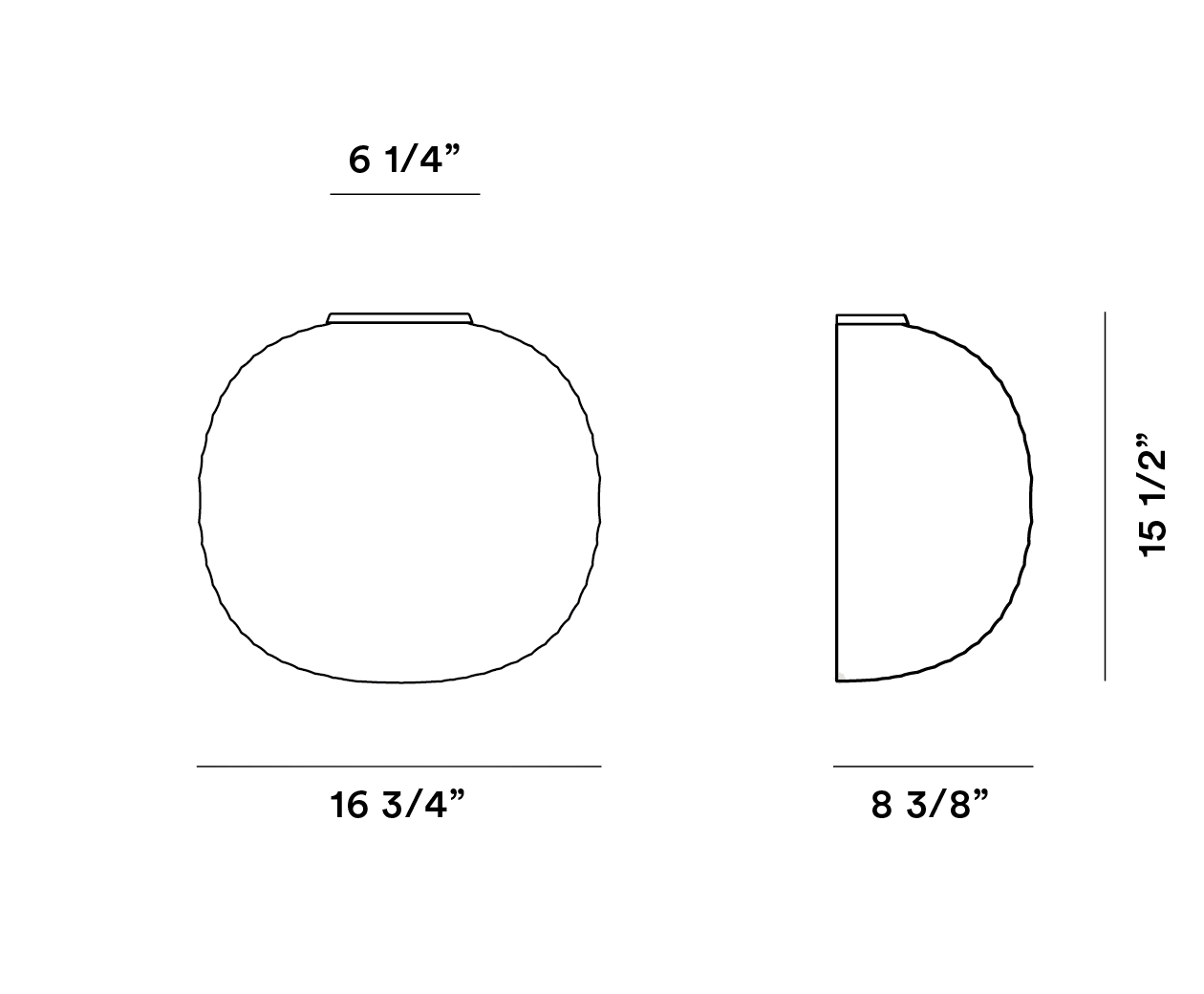 Wall lamp with diffused light. Hand-blown cased glass diffuser achieved using a glass blowing procedure without turning the glass in the mould (referred to as “stationary”). The high-relief hand-blown glass diffuser is produced inside a mould with special incisions of diagonal and horizontal lines inside it. Wall mount in epoxy powder coated metal and ABS.